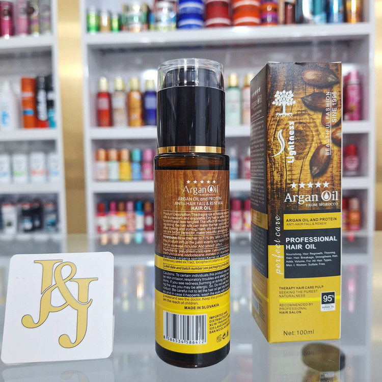 روغن آرگان لایتنس حاوی 95 درصد روغن آرگان طبیعی در ترکیبات خود است. که باعث نرمی و لطافت بافت مو شده و ساقه مو را تقویت می کند. روغن آرگان از خواص فوق العاده ای برخوردار است از جمله اینکه، باعث درخشان شدن و شادابی بافت مو می شود. وزی و خشکی را از بین برده و از ایجاد موخوره و شکنندگی نیز جلوگیری میکند. روغن آرگان حاوی مقادیر زیادی اسید چرب و ویتامین E است که باعث تقویت و سلامت ساختار مو شده و موهایی سالم و زیبا را به ارمغان می آورد. روغن آرگان لایتنس، بدون سولفات است بنابراین از موها به خوبی مراقبت و محافظت کرده و موهایی درخشان را به شما می بخشد. همچنین بخاطر نداشتن سولفات موهای کراتینه به راحتی میتوانند از آن استفاده کنند. روغن آرگان لایتنس رطوبت مو را حفظ کرده و از ریزش مو جلوگیری میکند.